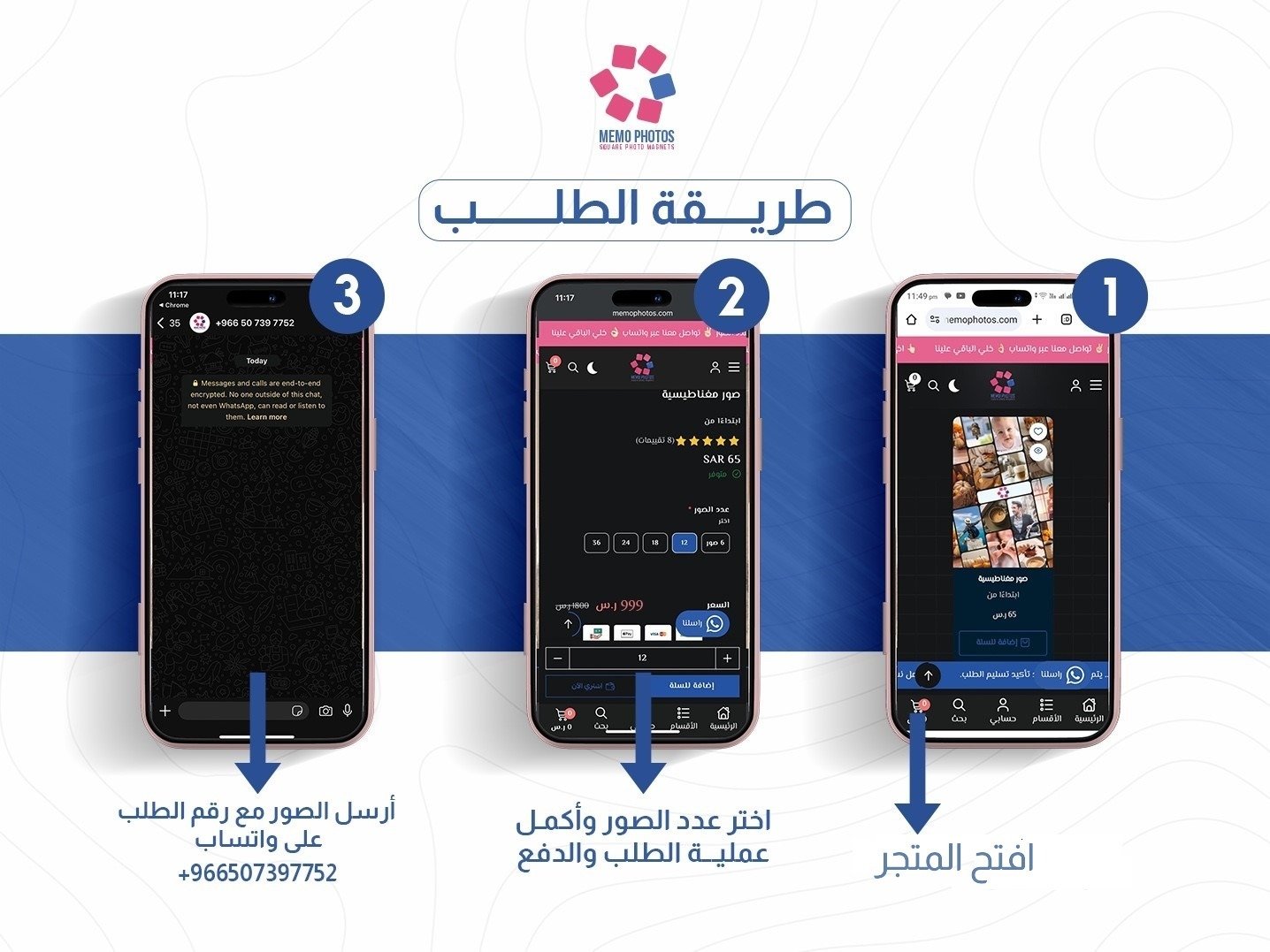 1- قم بشراء الخدمة 2-راسلنا عبر الواتس 3- نعمل على طلبك حتى الشحن لباب المزل